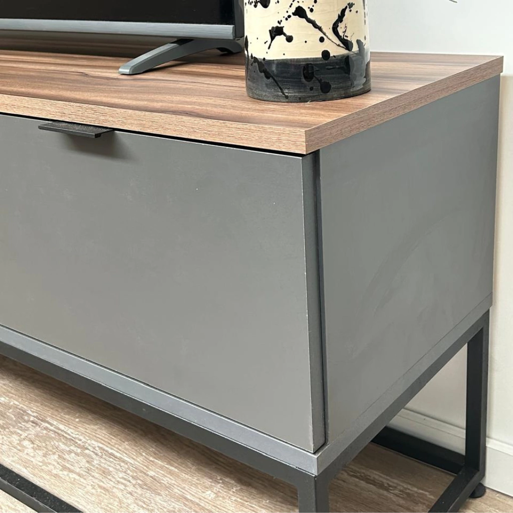 COLORES: Base y tiradores negros + Melamina grafito + Melamina Nogal Terracota.